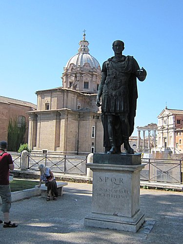 馬路邊有凱薩大帝的雕像,這裡有樹蔭,旁邊有不少人在休息。