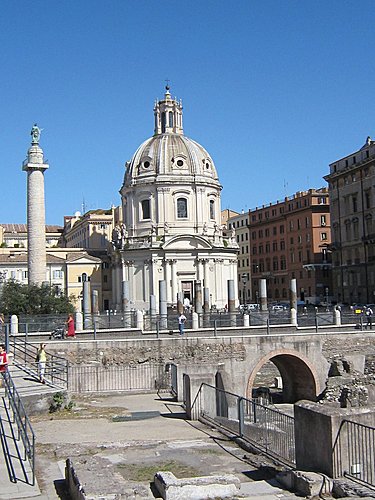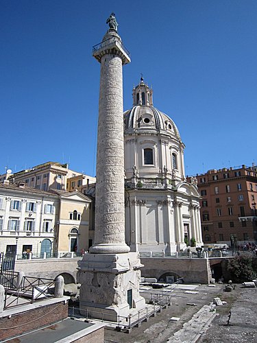 廣場左側有圖拉真柱(Trajan's Column),在公元113年落成,