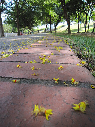 秋天巧遇阿勃勒,真有說不出的驚喜,我以為夏天過去他們也都謝了呢!