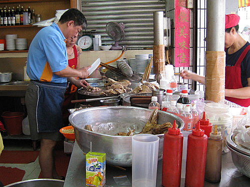 門口就是廚房,老闆正在忙著剁鴨上菜。