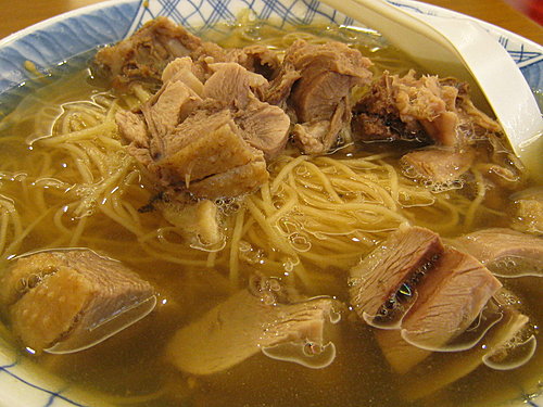 這就是有名的鴨肉麵線,好幾個電視台都去訪問。肉我覺得普通,當歸湯頭加上煮不爛的紅麵線還不錯。
