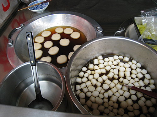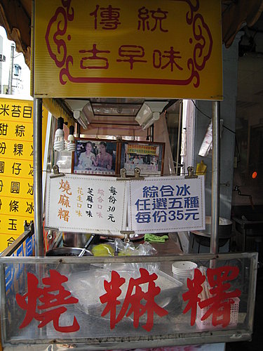 吃完鴨肉麵線已經飽了,可是妹妹說對面這家燒麻糬很好吃,我們就去看看。