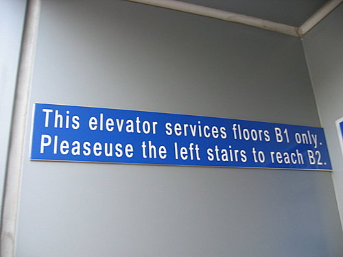 這個電梯標示很妙,它是用來服務地下一樓的喔。