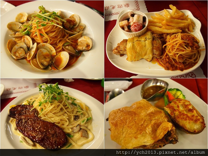 他要吃紅紅的麵,所以就點了茄汁的義大利麵,