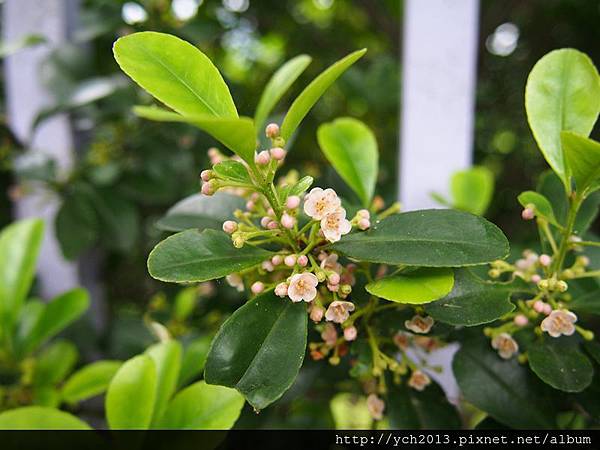 圍牆邊發現了好像七里香的樹籬,花好小,