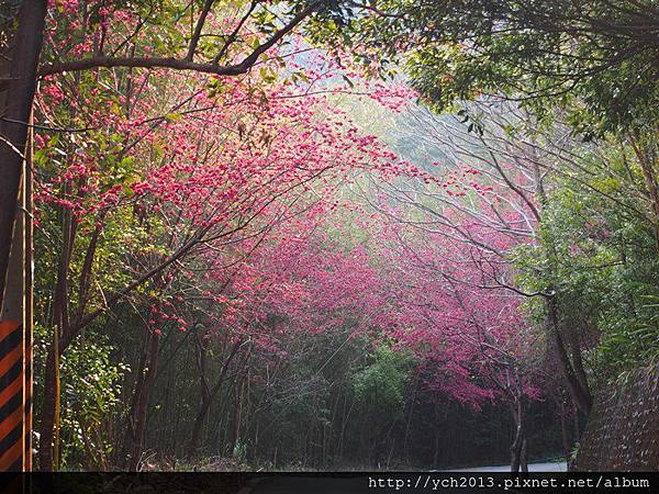他們家後方的山坡也有一排香水櫻,越長越大會很壯觀的。