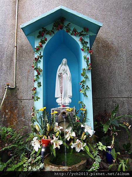 外面庭園的聖母像,看起來一直有人獻花唷。