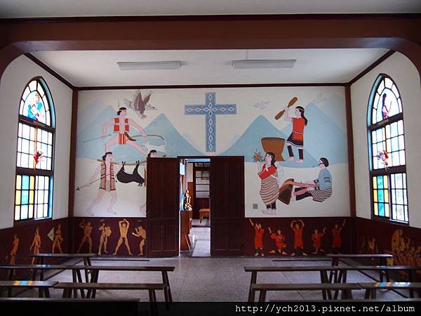 兩側都有彩色玻璃裝飾,光線透進室內很好看。