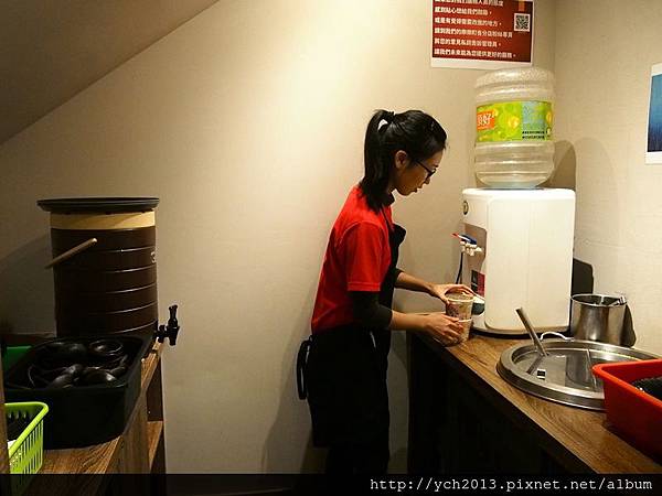 點好餐,就自取餐具和茶水,再盛點湯來喝。