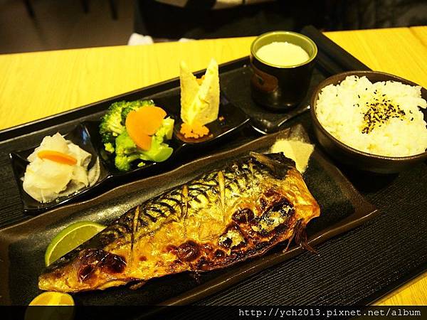 鯖魚很大片,一般只附上檸檬片,這還有金桔。