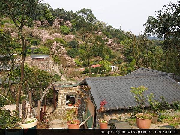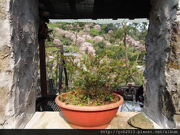 我喜歡這戶人家這個像玄關的窗子,背景剛好是櫻花山坡。