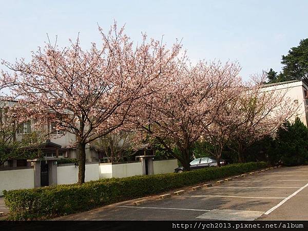 這裡有中華電信會館,是可以住宿的地方,我站在牆外,看見裡面櫻花盛開。
