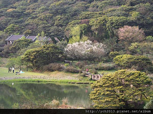 橋邊的吉野櫻是可以接近的,不過已經過了盛花期,遠望還是蠻多花的。
