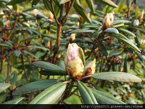 再往上走,來到冷水坑遊客中心,當時只見到紅星杜鵑的花苞,