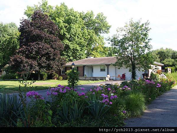 鄰居的花園蠻漂亮的,除了楓樹和繡球花,這邊也有很多紫錐花,