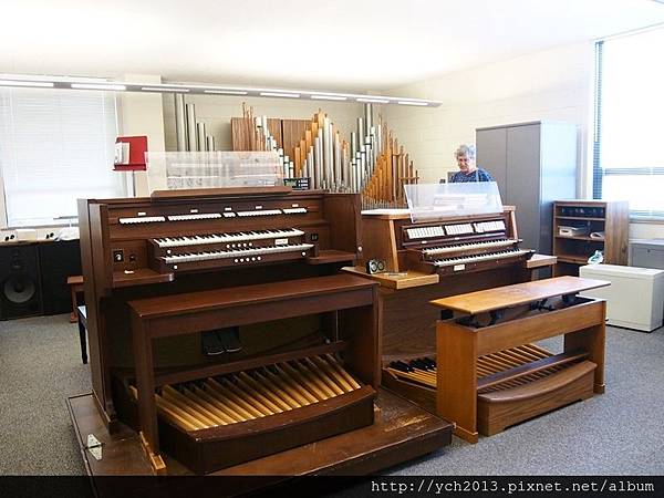 這是放幾種鍵盤樂器的地方,眼前這兩台是管風琴。