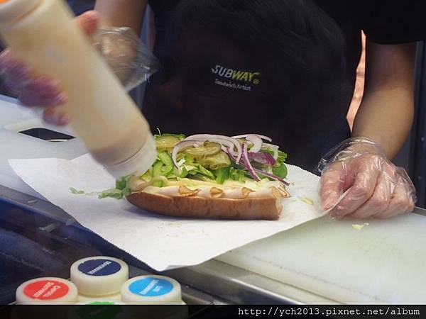中午到附近的Subway吃三明治,自己選麵包、肉品、蔬菜和醬料,