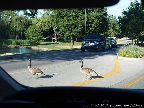 不少加拿大雁在校園裡遛躂,路上的車子都會讓牠們三分,很有趣的畫面。