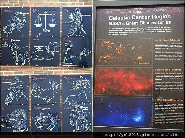 牆上有些星座、天文望遠鏡和觀星資訊,