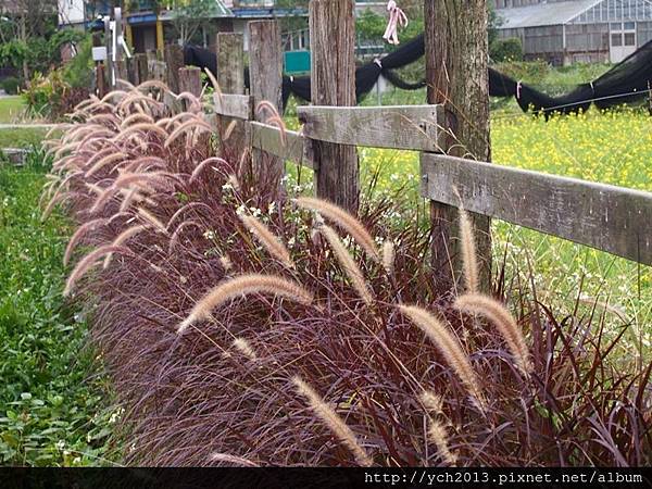 溝邊的紫葉狼尾草開得蠻漂亮的,平常看到的狼尾草都是綠葉子,不太一樣。