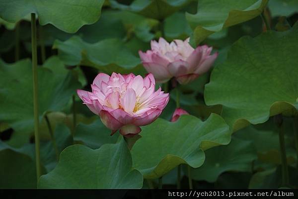 這公園裡的水生池不算大,但是牡丹蓮開得很多。