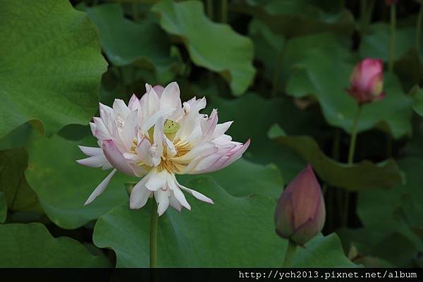 牡丹蓮雖然花形較小,但是花瓣層層疊,白中帶粉,也很優雅。