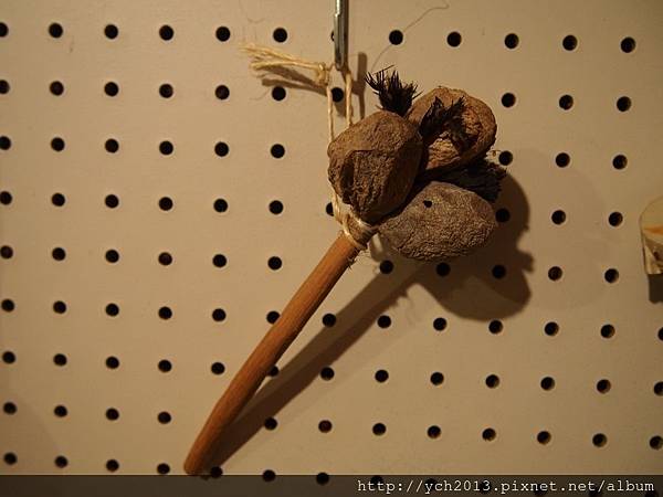 下方是雨聲器(rainstick),立起來的時候會發出類似下雨的聲音。