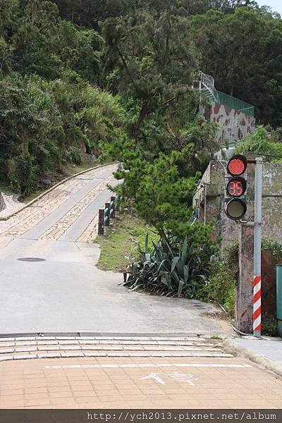 一邊是往上的山路,還設置了紅綠燈,應該是怕路窄在半路會車而設置的吧。