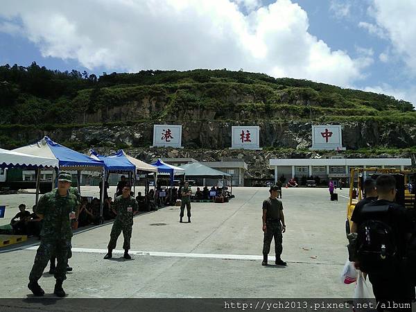 遊客先下船,阿兵哥都已經在待命,準備運送補給。