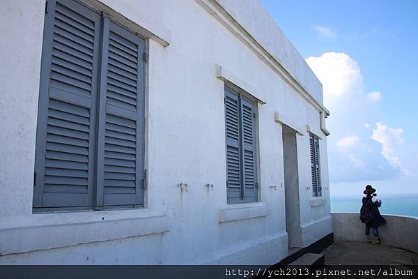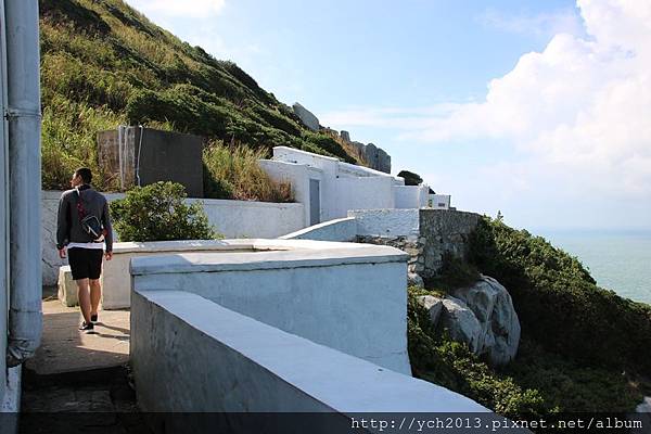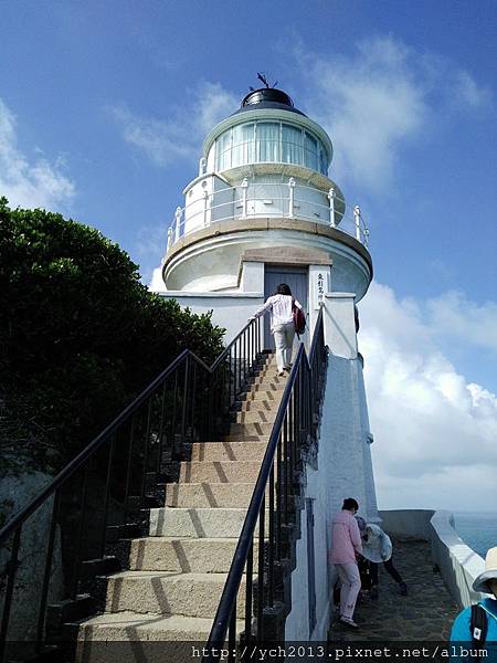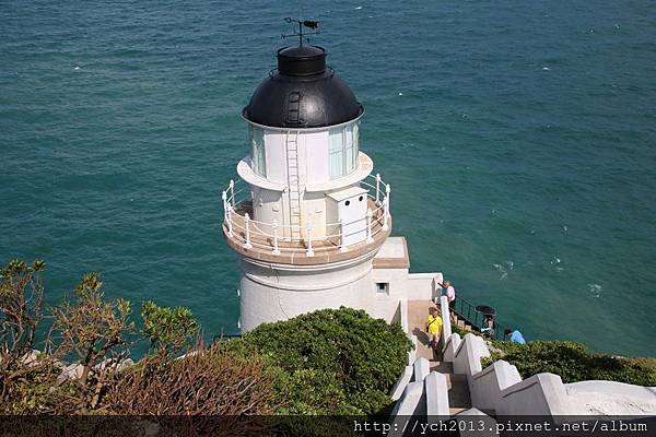 這純白色燈塔有14.2公尺高,處立在峭壁旁,早期燈塔在管制區,