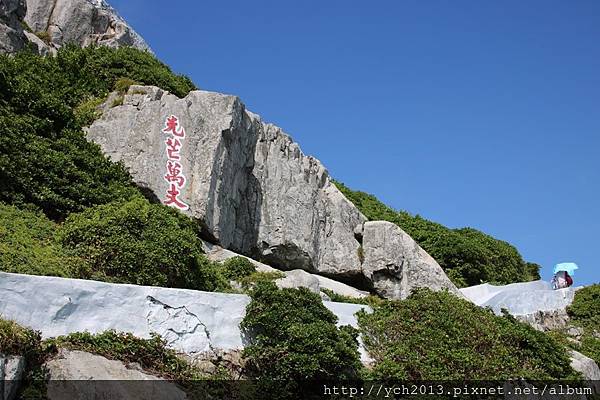 沿著步道往上繼續走,上面大岩石上有"萬丈光芒"字樣,