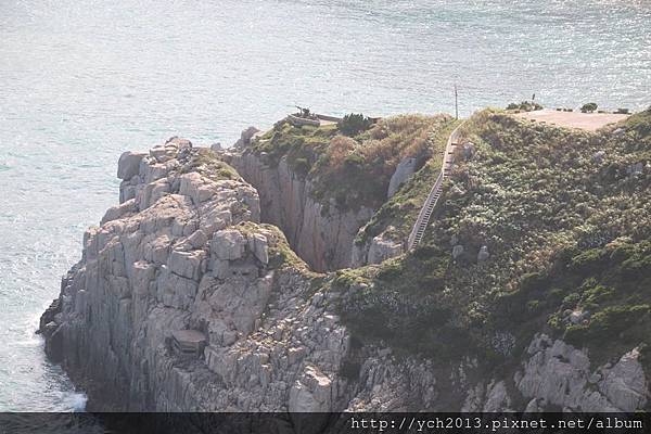 遠眺下山後要去的景點"一線天",上頭有砲塔呢。