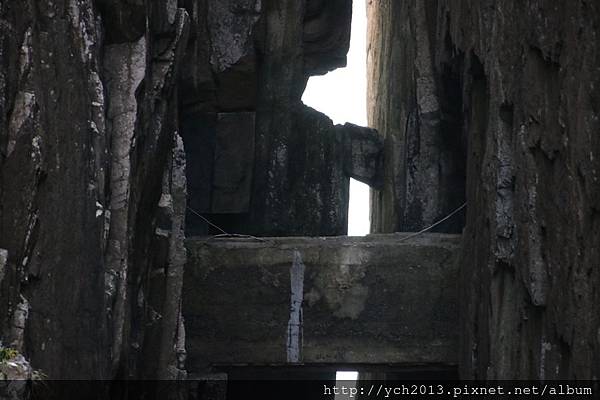 兩大岩壁之間有通道,看起來應該是國軍建的。