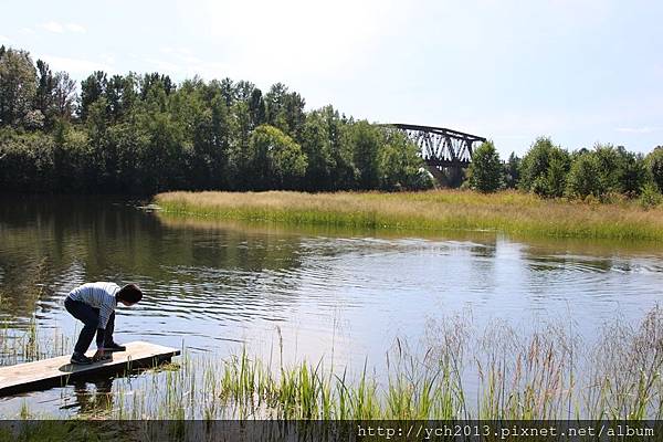 吃飽到外面拍照,遠望過去是今天走過的河岸,