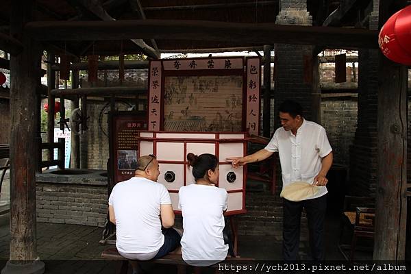 在染坊旁邊有個拉洋片的小站,以前聽過拉洋片,