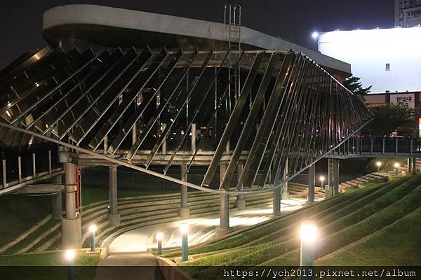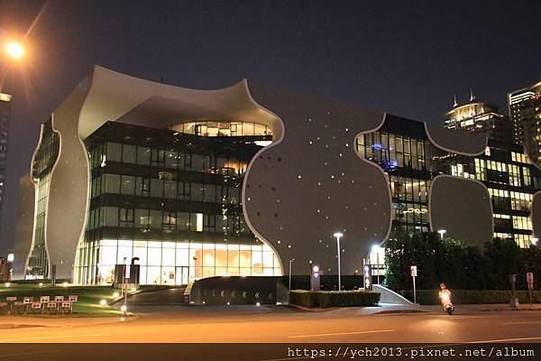 我們住在逢甲夜市附近的旅館,晚上和幣海藍天相約去逛台中國家歌劇院。