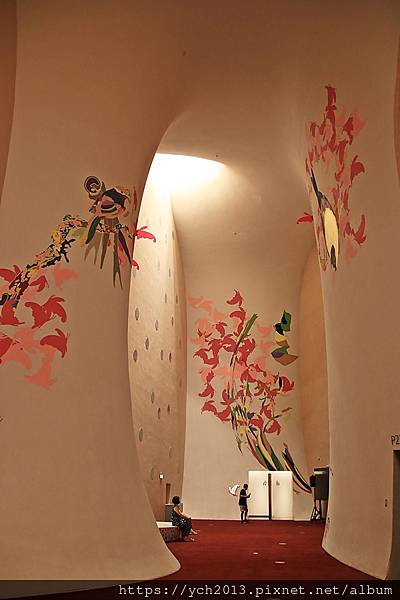 內部有許多像涵洞一般彎曲的牆面,建造時頗有難度。