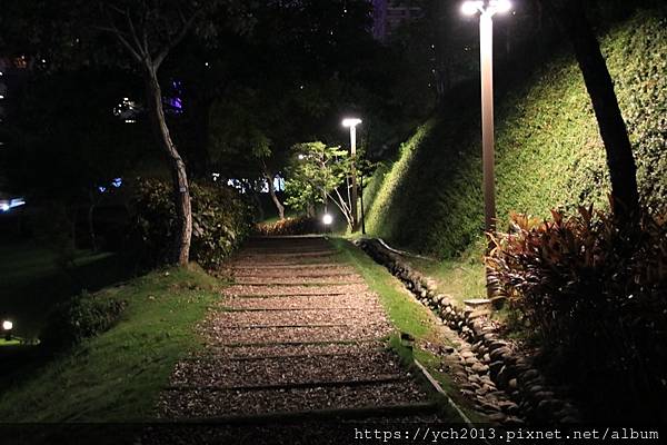 這個公園有個水池,低於平面,有滯洪、排水、休閒、景觀作用,