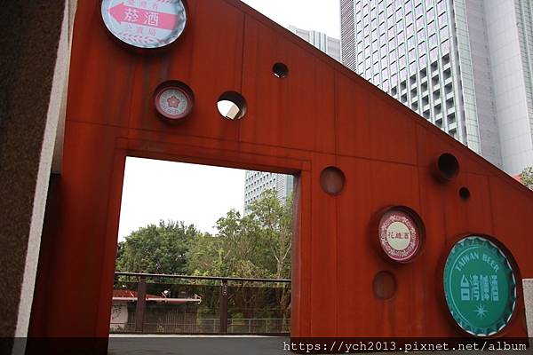 牆面上的大小圓洞和瓶蓋,象徵著瓶蓋生產的人文意義。