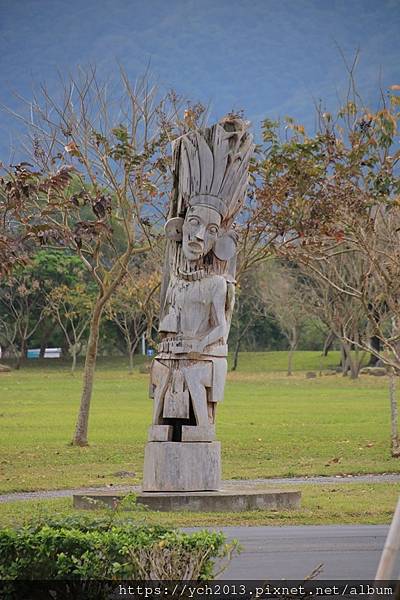 遠一點的地方有個木雕,看起來像是原住民的模樣。