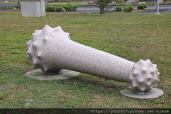 草皮上還有這作品,稱為戲法,是韓國藝術家金成馥用花崗岩做的作品,