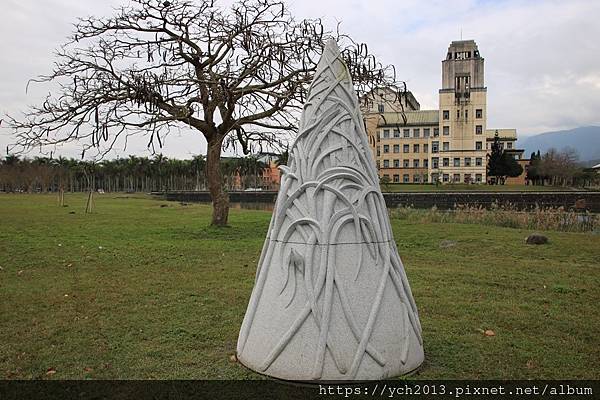 象徵東華大學是從甘蔗田與芒草叢中建設起來的學術殿堂。