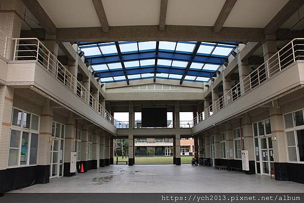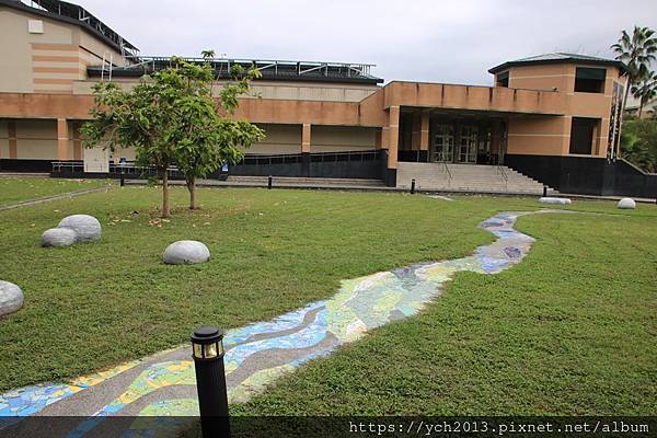 圖書館ㄇ字型的建築就是活動中心,前方留了一片草皮,