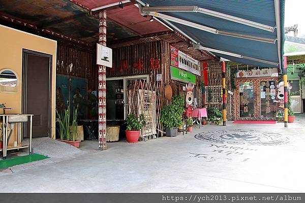 餐廳是平房的一側,連著的另一棟看起來是住家,有個小廣場。