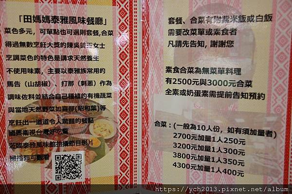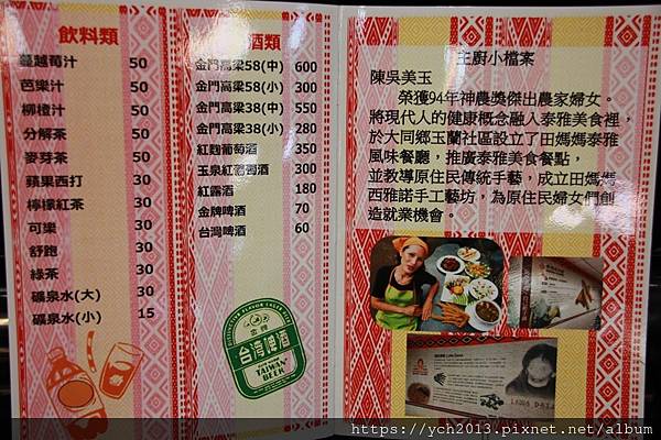 餐廳門口就很有泰雅風情,上面有些菜色介紹。