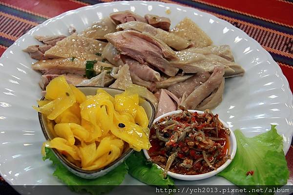 打那雞是淋上刺蔥醬汁的醉雞,雞肉很鮮嫩。