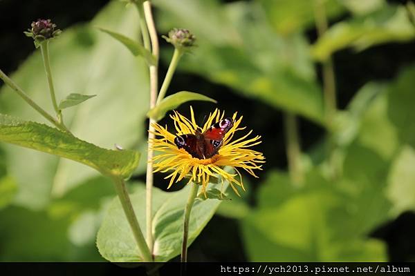 捕捉到一隻蝴蝶在某種向日葵上,牠身上的花紋是台灣沒見過的。