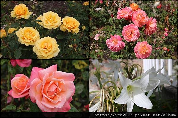 溫室無法進入,但外面有玫瑰園,也開得很熱鬧。