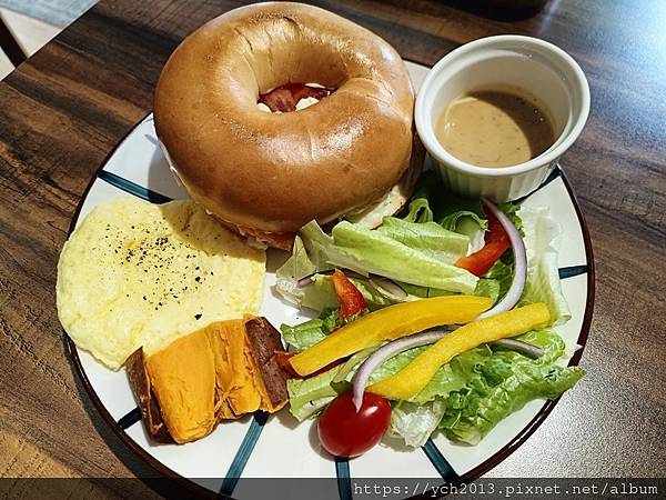 我們家人都愛吃魚,另一份點了燻鮭魚貝果,