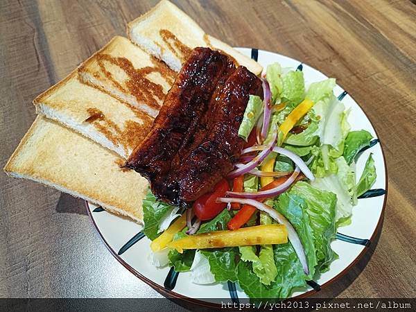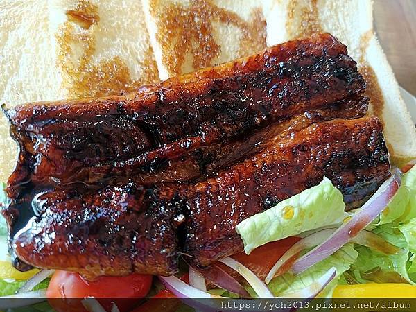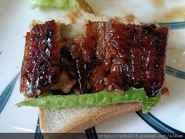 麵包加上生菜,配上甜甜鹹鹹的鰻魚真好吃。